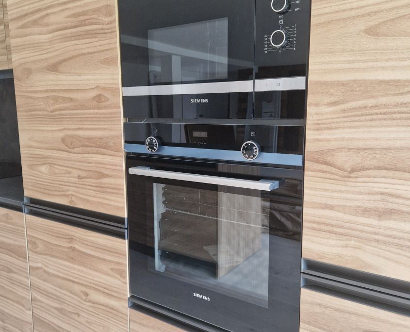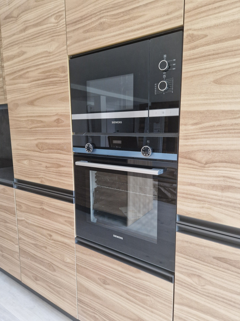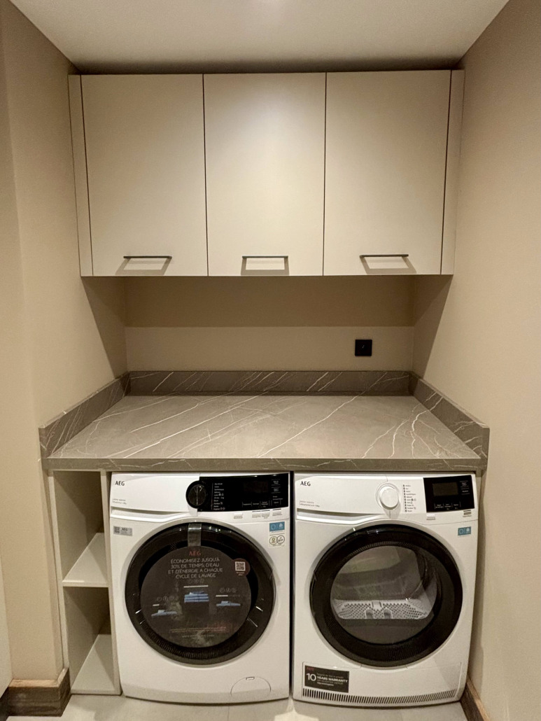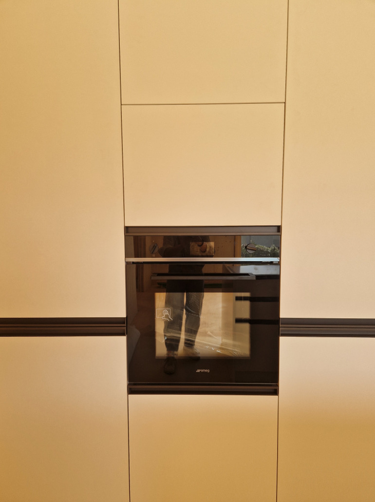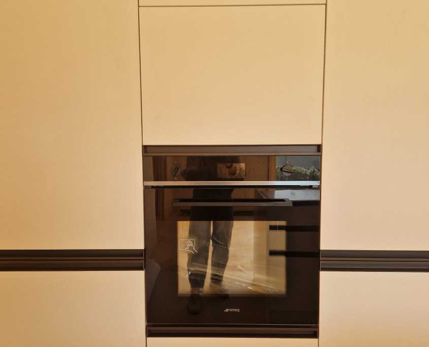 Très équipée, la cuisine intègre deux fours vapeur, deux réfrigérateurs, une cave à vin et une plaque de cuisson aspirante AEG, pour un confort d’usage optimal tout en préservant la pureté des lignes.